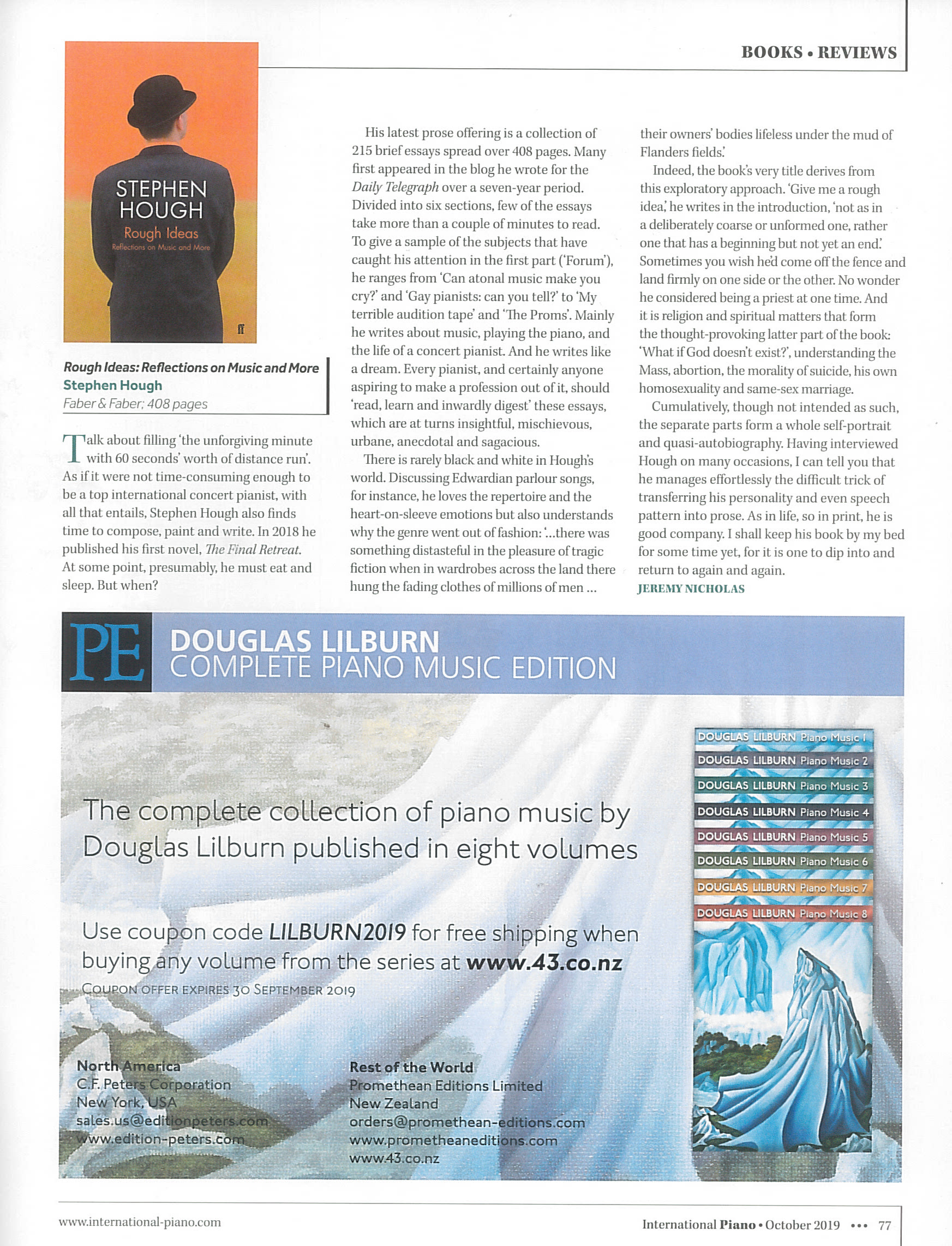 Reviews of Stephen's new book Rough Ideas published by Faber & Faber in The Observer & The Tablet & The Big Issue & BBC Music Magazine & International Piano & The Spectator & Catholic Herald & Gramophone & Classical Music & Times Literary Supplement & Church Time